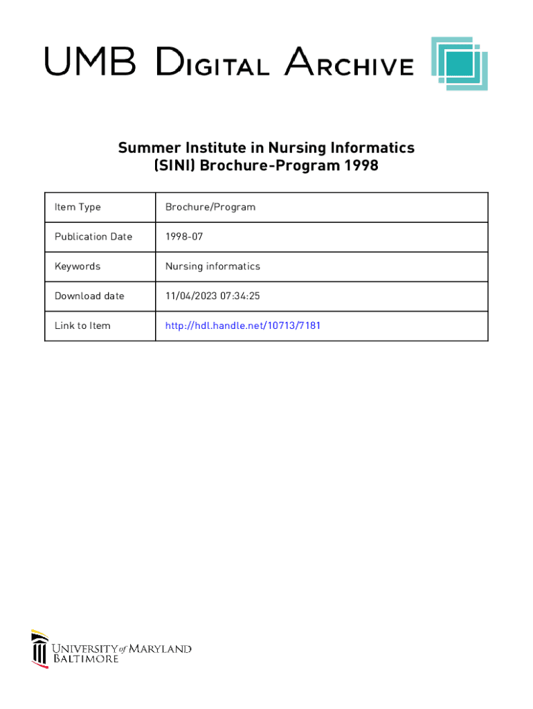 Summer Institute in Nursing Informatics (MINI) BrochureProgram 1998 Item TypeBrochure/ProgramPublication Date199807KeywordsNursing informaticsDownload date11/04/2023 07:34:25Link to Itemhttp://hdl.handle.net/10713/71818th
