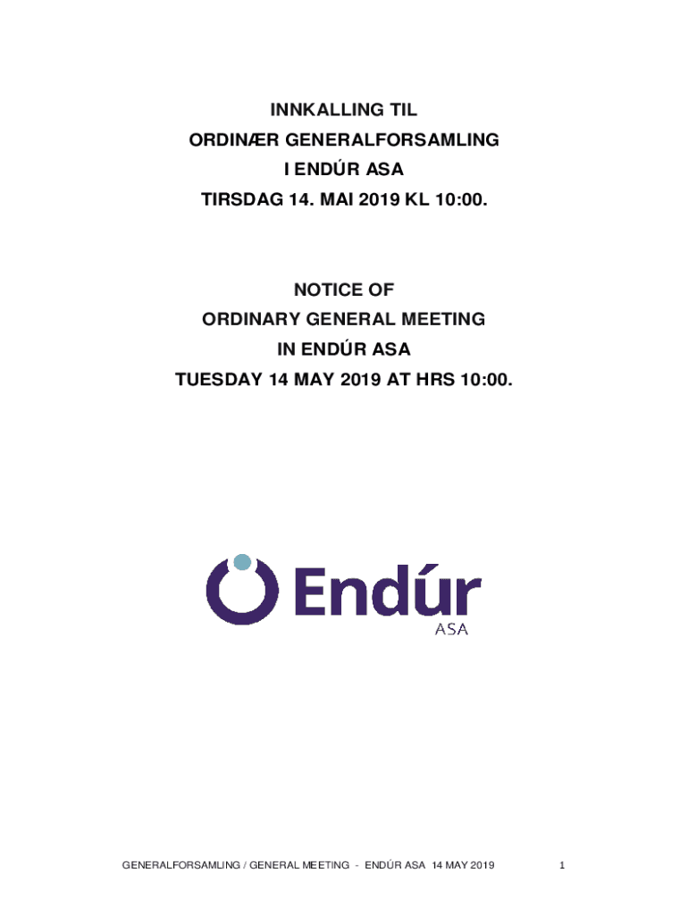 TUESDAY 14 MAY 2019 AT HRS 10:00.GENERALFORSAMLING / GENERAL MEETING END