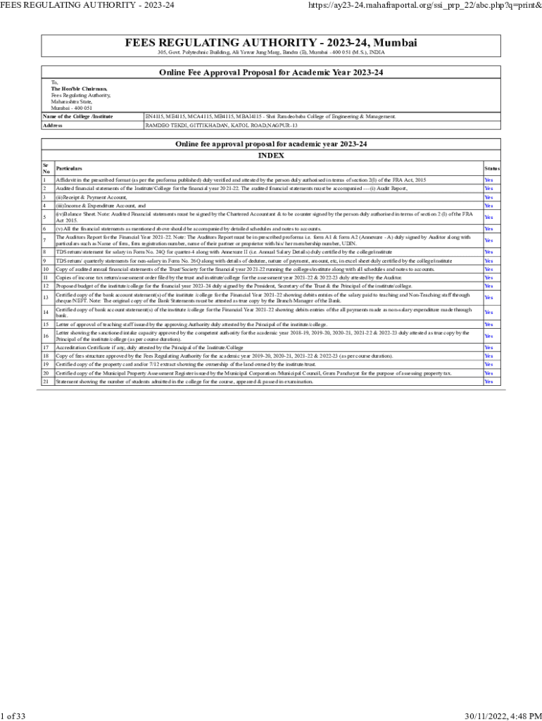 FEES REGULATING AUTHORITY 2023241 of 33https://ay2324.mahafraportal.org/ssi_prp_22/abc.php?qprint&FEES REGULATING AUTHORITY 202324, Mumbai