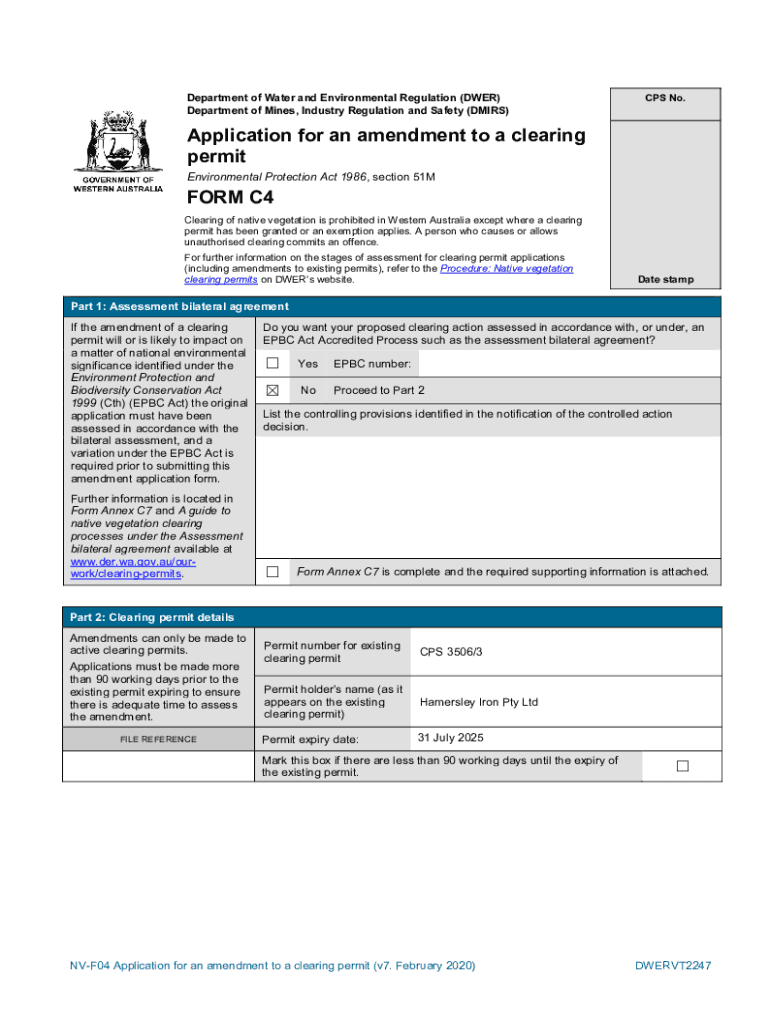 Department of Water and Environmental Regulation (DEER) Department of Mines, Industry Regulation and Safety (EMIRS)CPS No. Application for an amendment to a clearing permit Environmental Protection