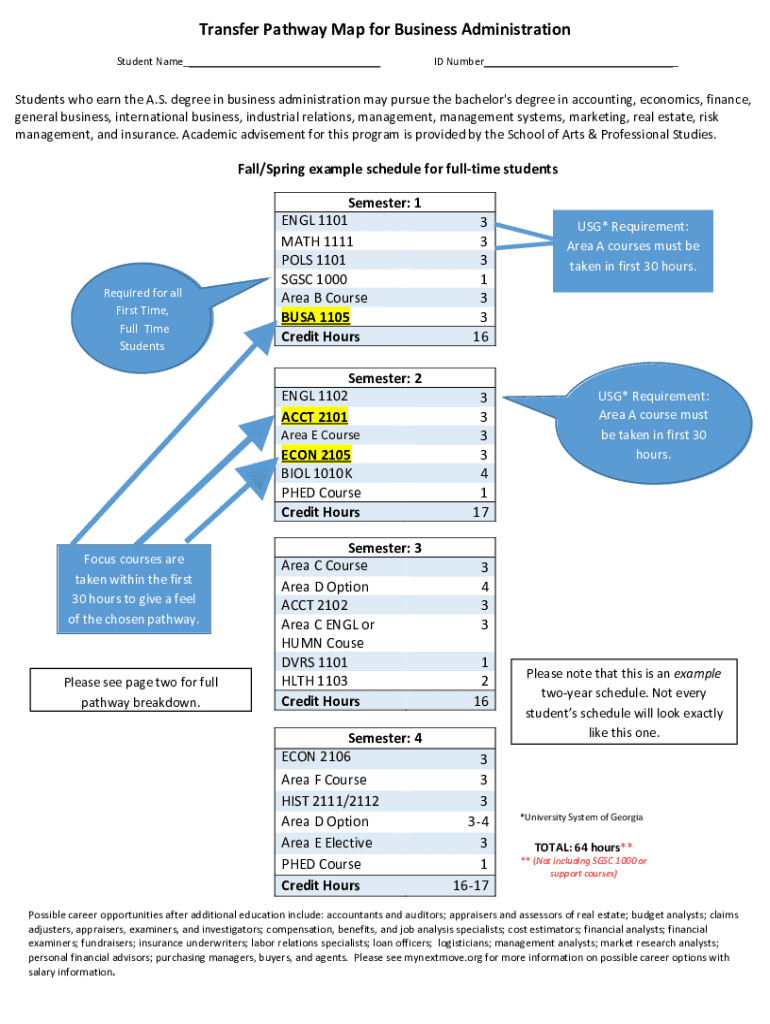 Transfer Pathway Map for Business Administration Student Name_ID Number_Students who earn the A.S. degree in business administration may pursue the bachelor\'s degree in accounting, economics, finance,