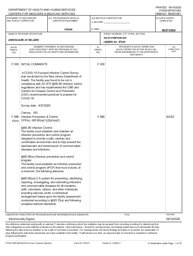 AND PLAN OF CORRECTION(X1) PROVIDER/SUPPLIER/CIA
