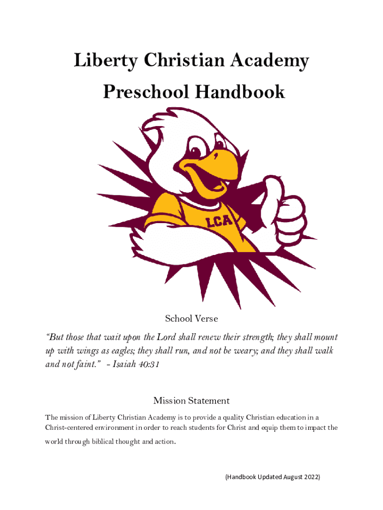 Liberty Christian Academy Preschool HandbookSchool Verse But those that wait upon the Lord shall renew their strength; they shall mount up with wings as eagles; they shall run, and not be weary; and