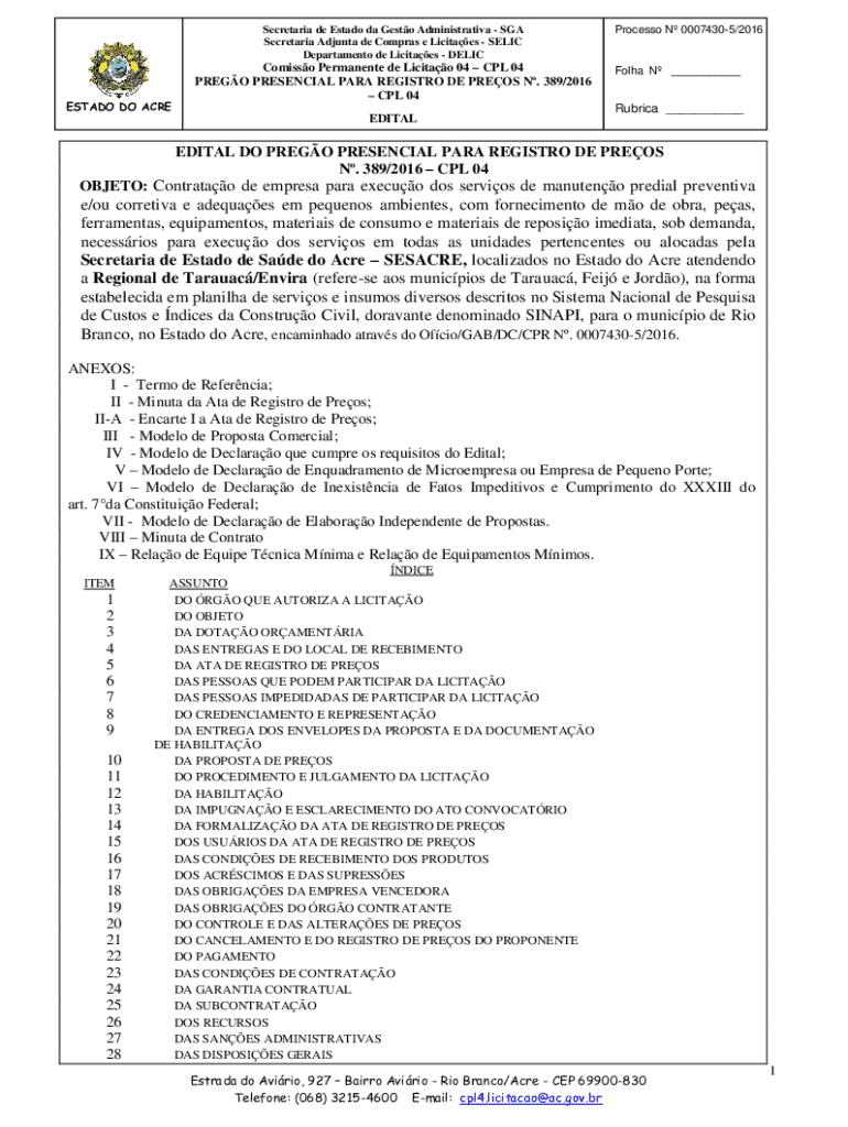 Department de Licitaes DELICESTADO DO ACREComisso Permanent de Licitao 04 CPL 04