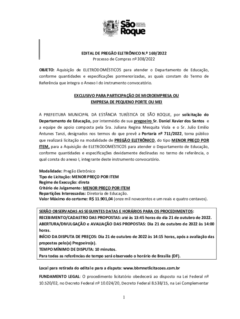 Obtenha o gratuito OBJETO: Aquisio de ELETRODOMSTICOS para atender o Departamento de Educao,