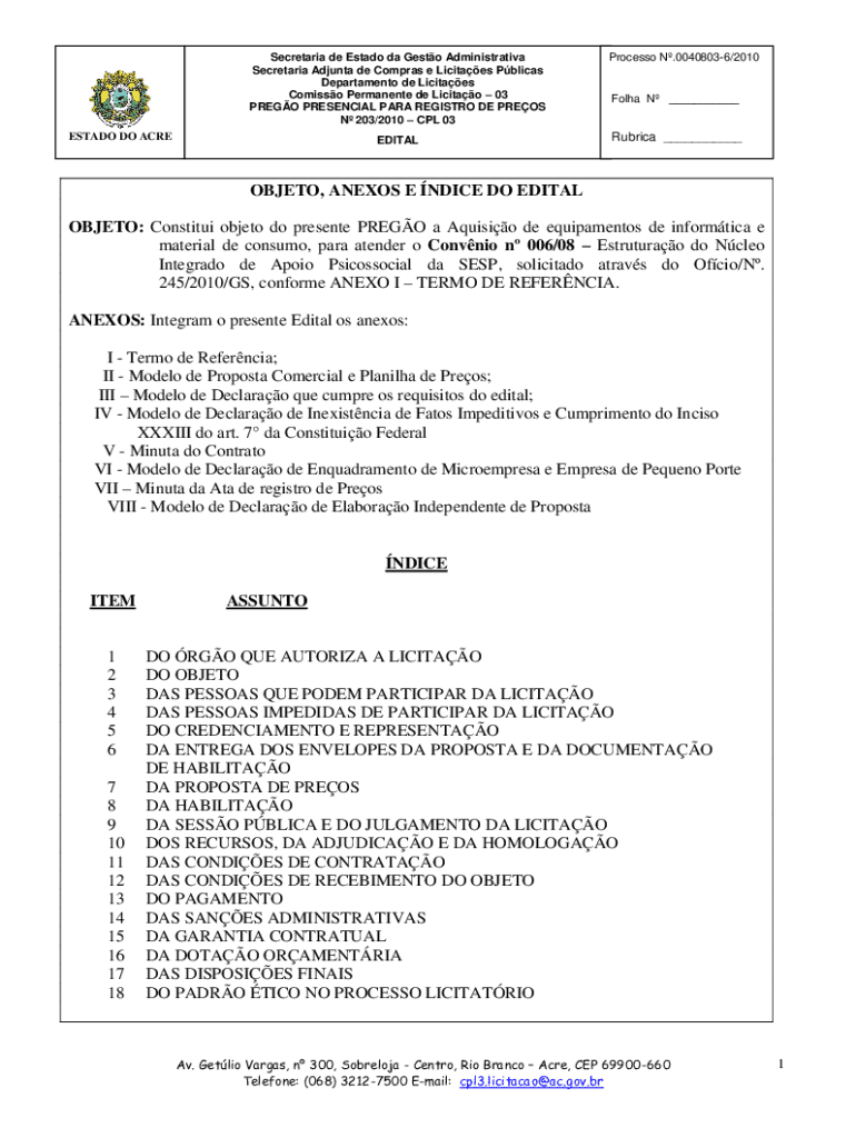 Obtenha o gratuito OBJETO: Contratao de empresa para o fornecimento de ...
