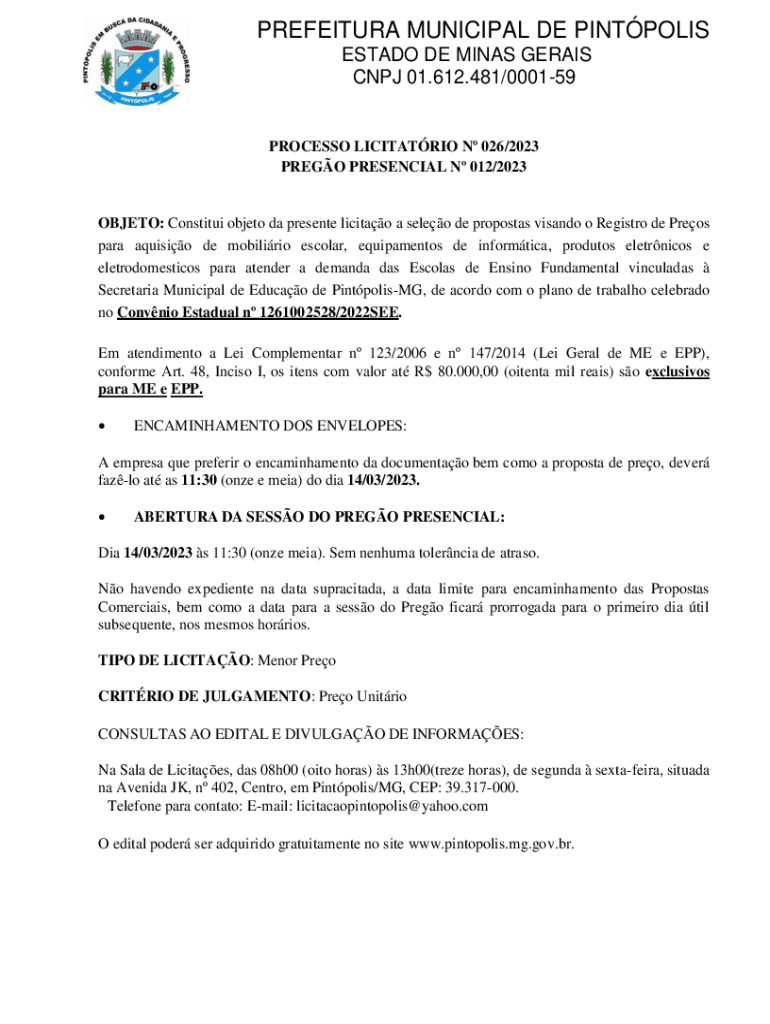PRESO PRESENCE N 012/2023OBJETO: Constitute object the present licit a see DE proposal viands