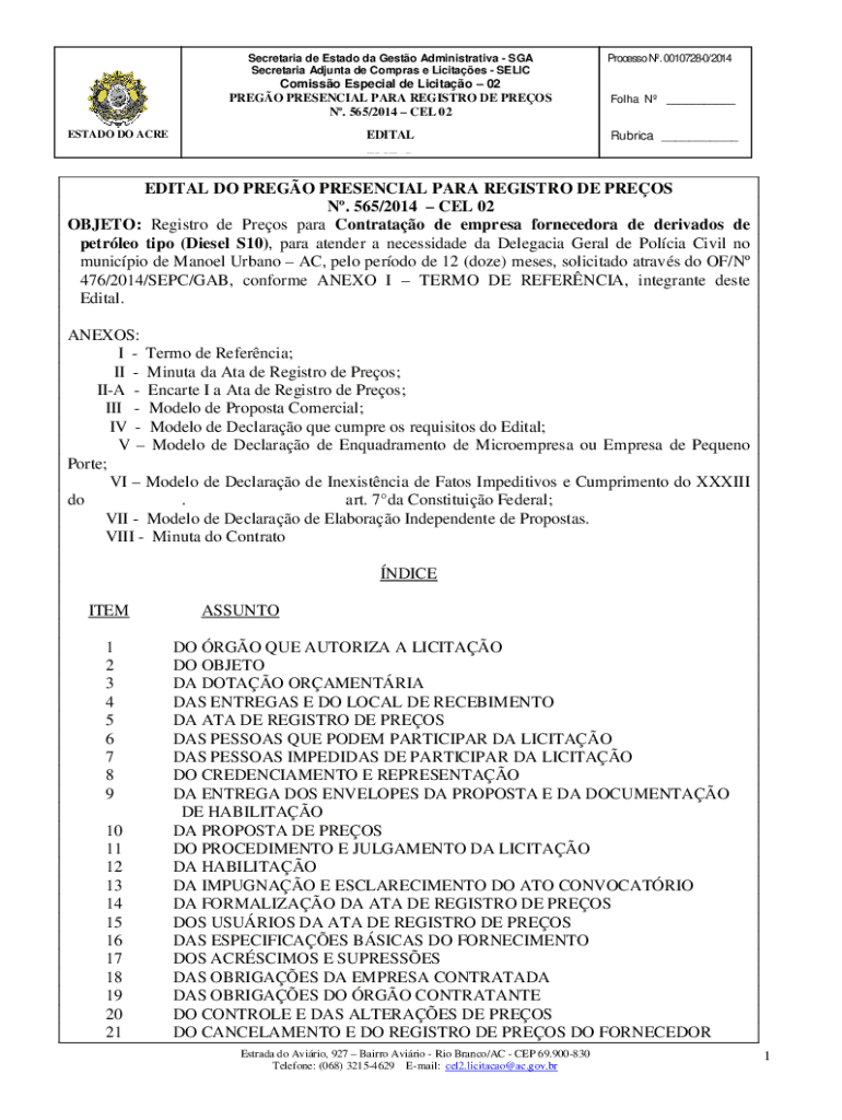Secretariat de Estado the Gusto Administrative SGA Secretariat Ad junta DE Cameras e Lucites SELICProcesso N. 00107280/2014Comisso Especial DE Licit 02 PRESO PRESENCE PARA REGISTRY DE PRESS N. 565/2014