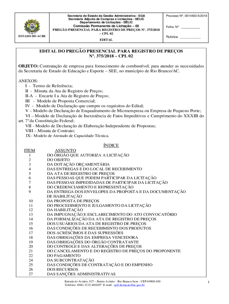 Department de Licitaes DELICESTADO DO ACREComisso Permanent de Licitao 02