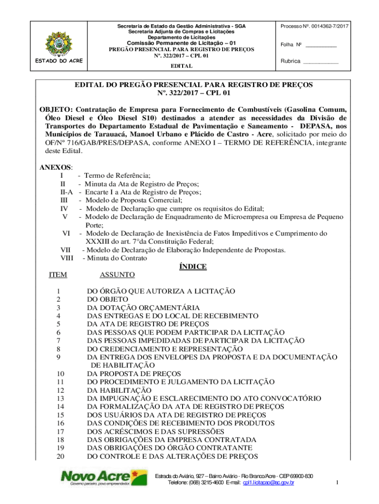Department de LicitaesESTADO DO ACREComisso Permanent de Licitao 01