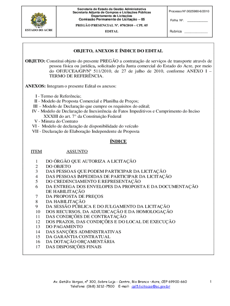 Secretariat de Estado the Gusto Administrative Secretariat Ad junta DE Cameras e Lucites Pelican Department de LicitaesComisso Permanent de Licitao 05Processo N.00259806/2010 Fol ha N.___PRESO PRESENCE
