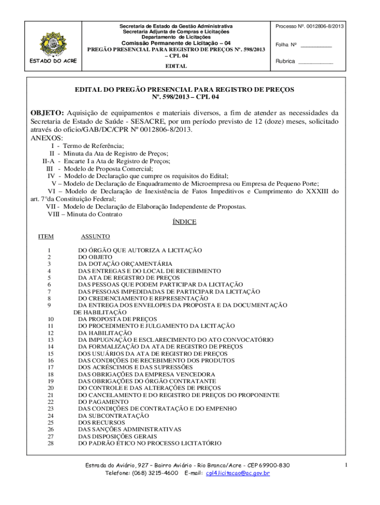 Department de LicitaesESTADO DO ACREComisso Permanent de Licitao 04