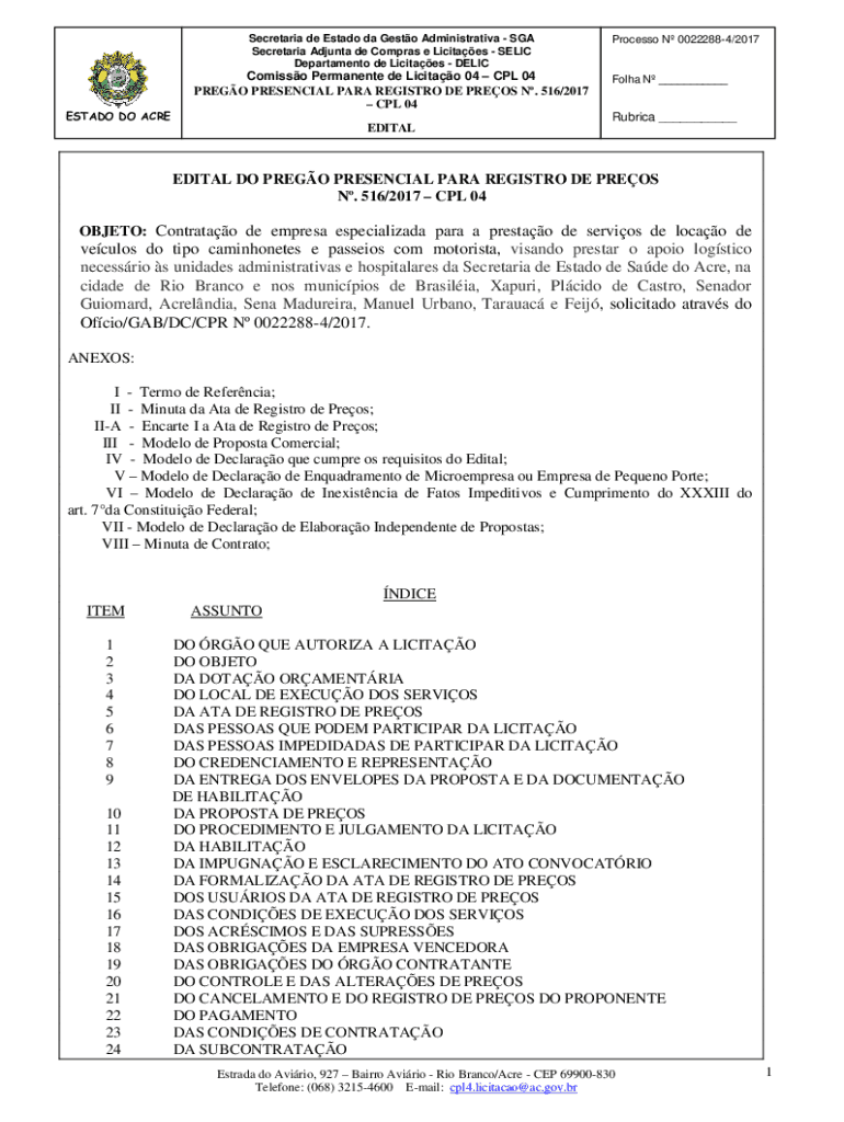 Department de Licitaes DELICESTADO DO ACREComisso Permanent de Licitao 04 CPL 04