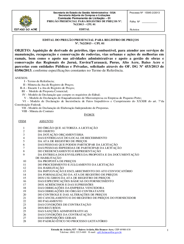 Secretariat Ad junta DE Cameras e LicitaesProcesso N 155452/2013Comisso Permanent de Licitao 01
