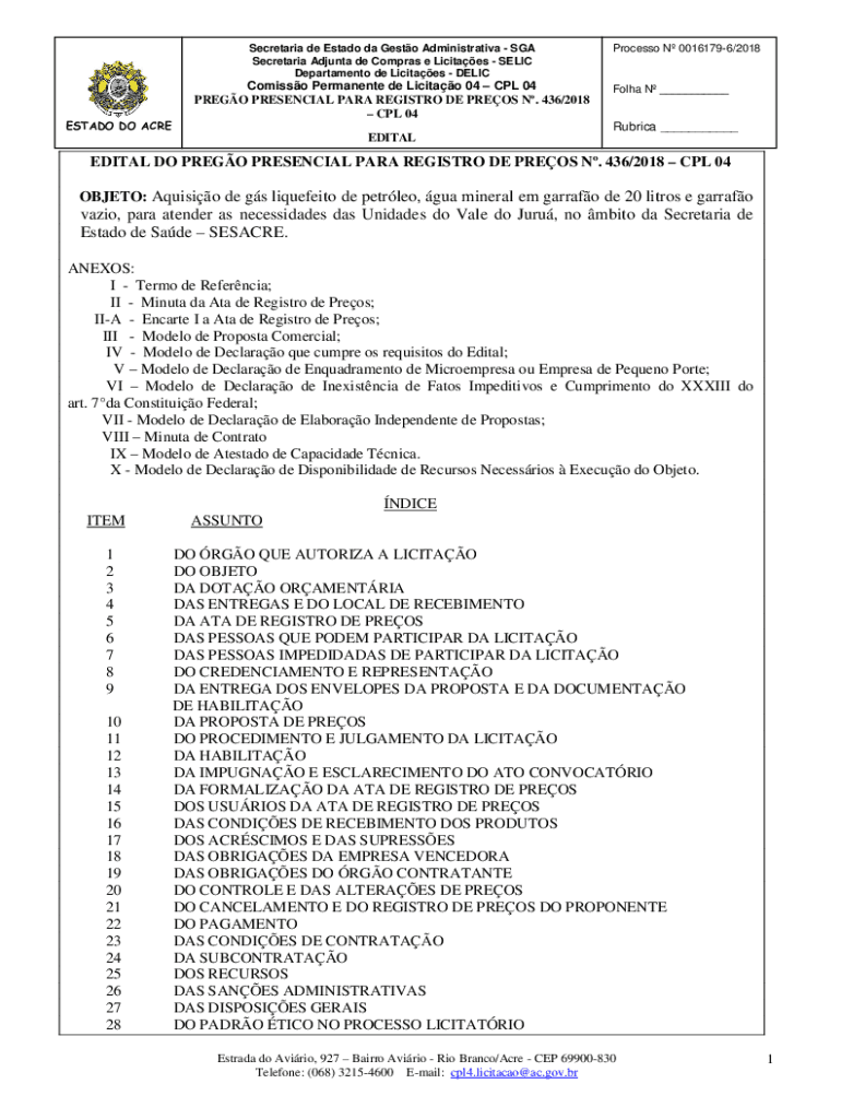 Obtenha o gratuito OBJETO: Aquisio de gs liquefeito de petrleo, gua mineral em garrafo de 20 litr...