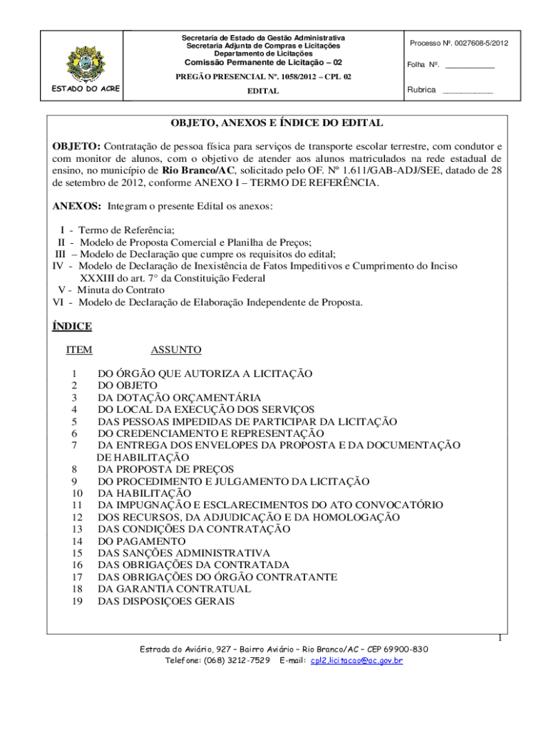 Obtenha o gratuito OBJETO: Contratao de pessoa fsica para servios de transporte escolar terrestre...