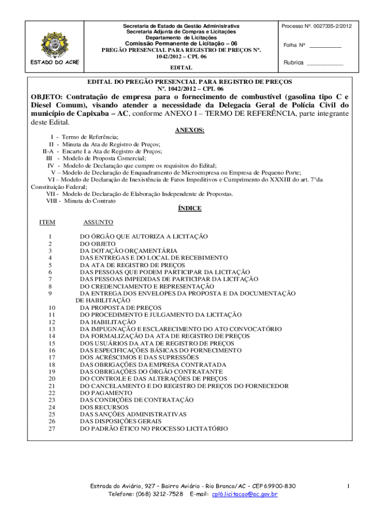 Department de LicitaesESTADO DO ACREComisso Permanent de Licitao 06