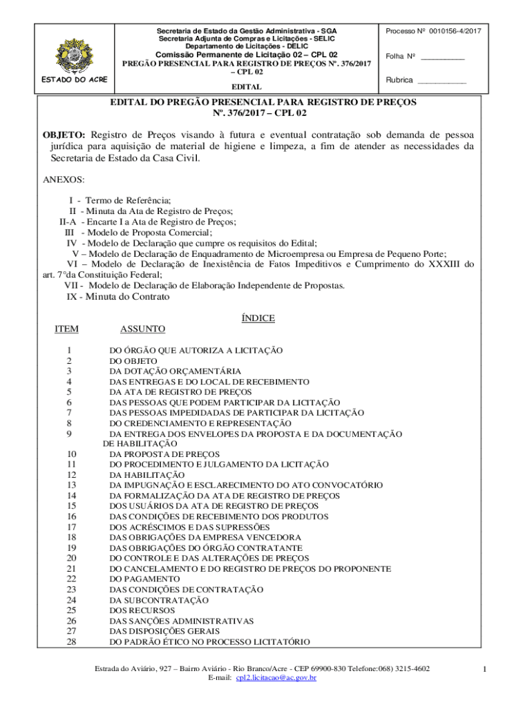 Department de Licitaes DELICESTADO DO ACREComisso Permanent de Licitao 02 CPL 02