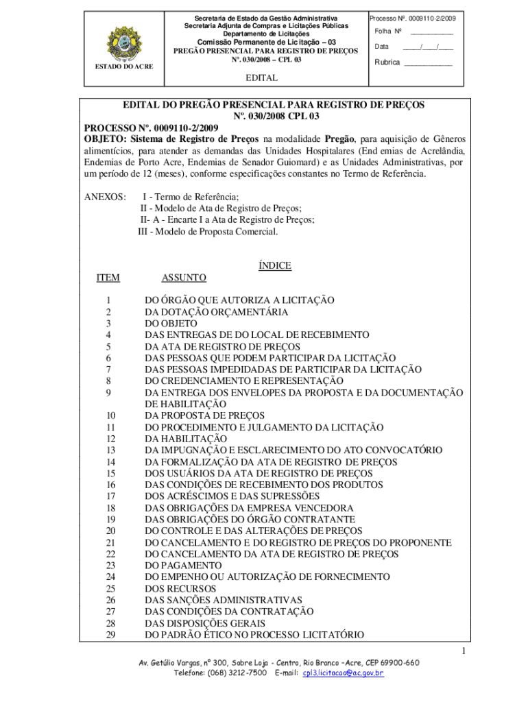Obtenha o gratuito OBJETO: Aquisio de Gneros Alimentcios - perecveis e ...