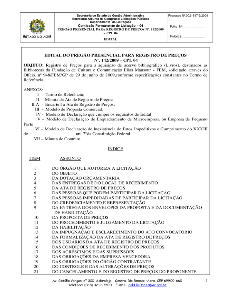 Department de LicitaesESTADO DO ACREComisso Permanent de Licitao 04