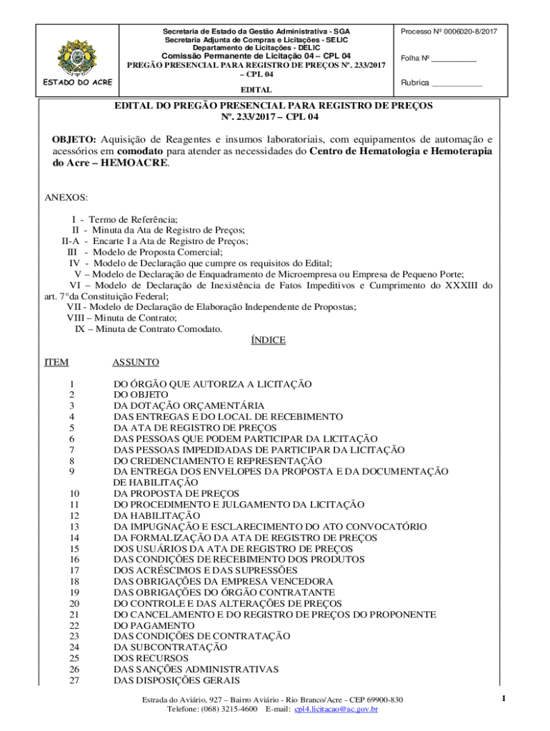 Obtenha o gratuito OBJETO: Aquisio de Reagentes e insumos laboratoriais, ...