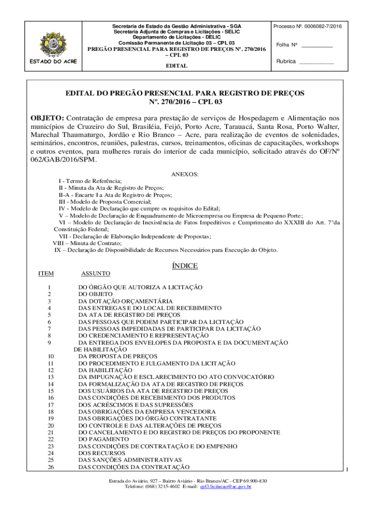Secretariat de Estado the Gusto Administrative SGA Secretariat Ad junta DE Cameras e Lucites RELIC Department de Licitaes RELIC Comics Permanent de Licitao 03 CPL 03ESTADO DO ACREPREGO PRESENCE PARA