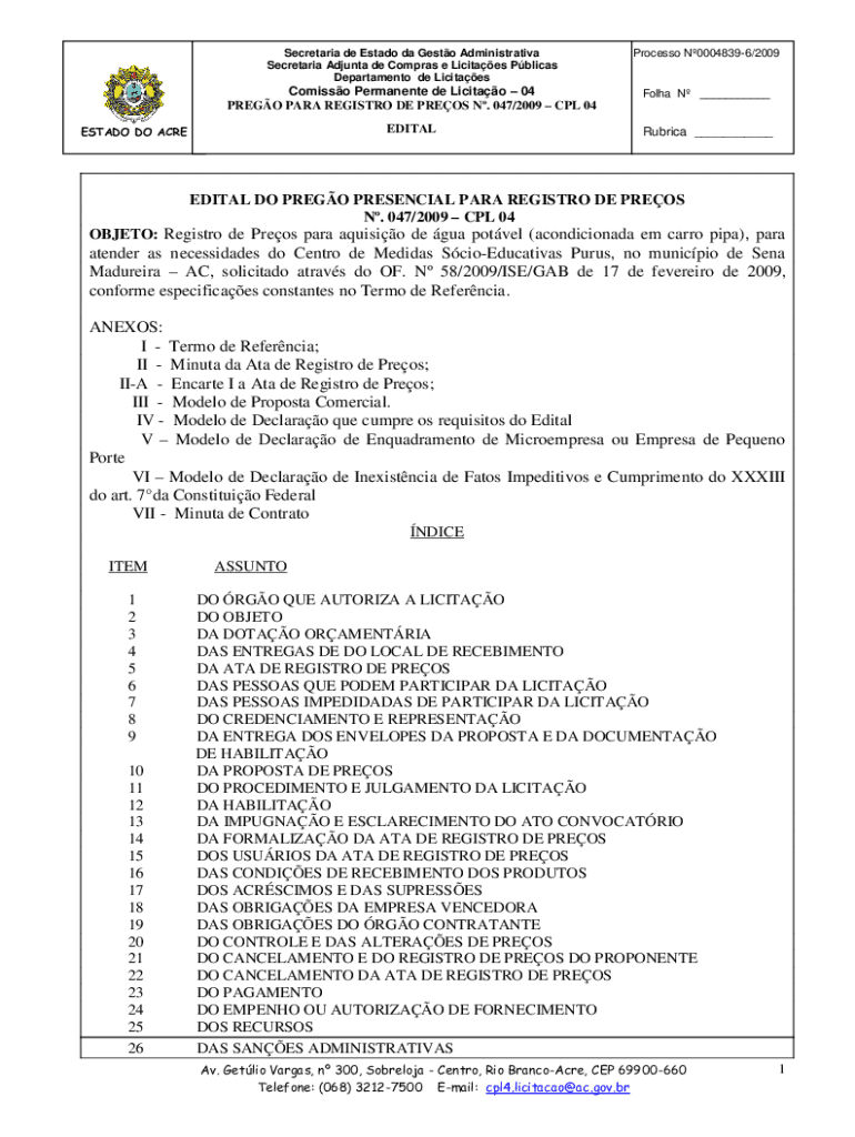 Obtenha o gratuito OBJETO: Registro de Preos para aquisio de gua potvel (acondicionada em carro p...