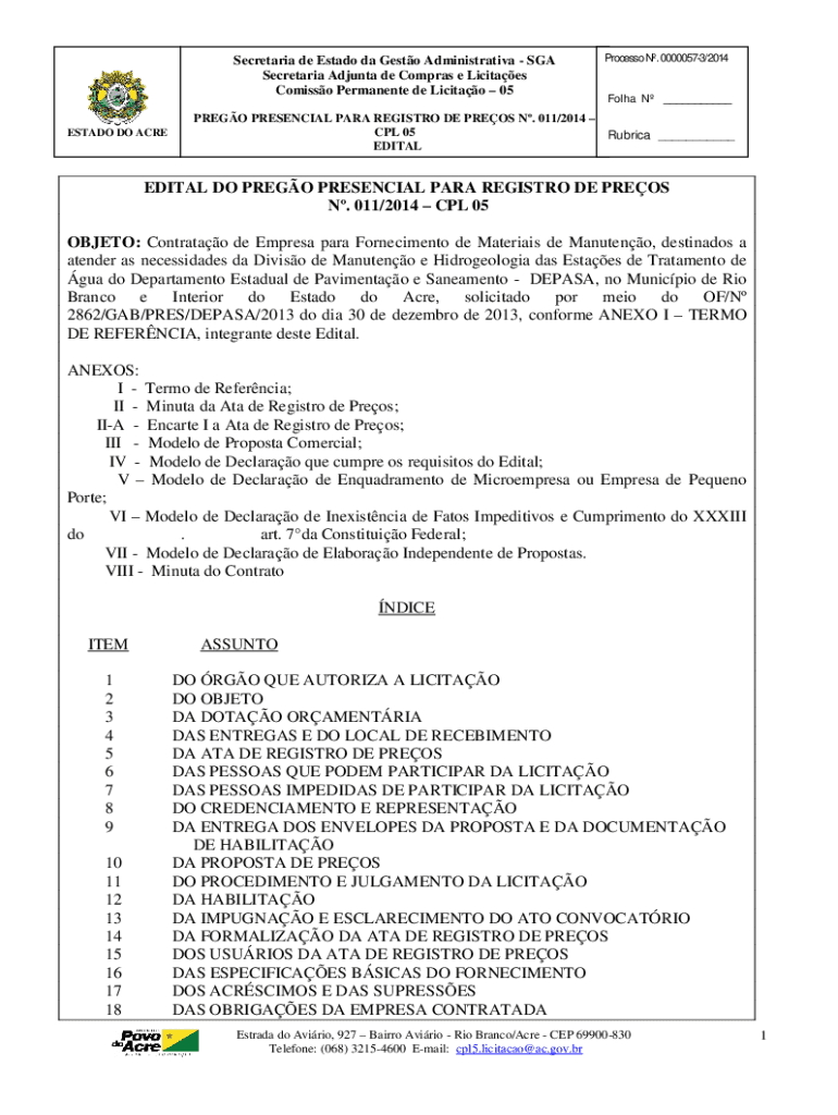ESTATE DO Reprocess N. 00000573/2014Folha N ___PRESO PRESENCE PARA REGISTRY