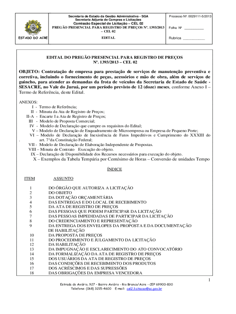 Secretariat Ad junta DE Cameras e LicitaesProcesso N. 00291115/2013Comisso Especial DE Licit CEL 02