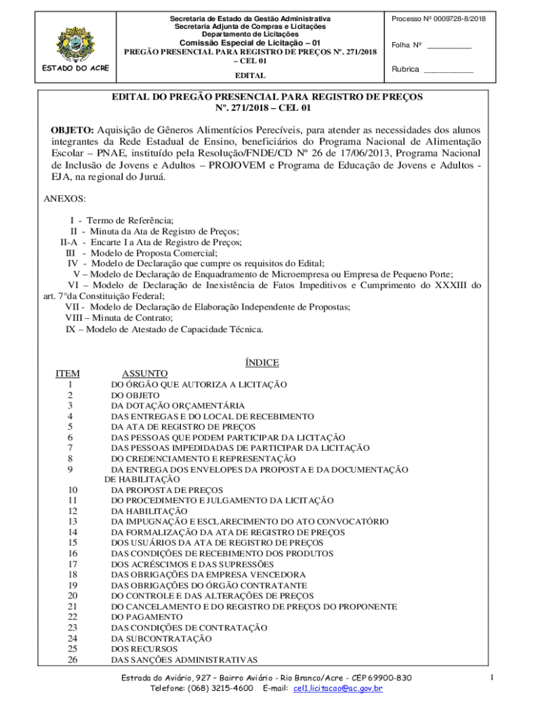 Department de LicitaesESTADO DO ACREComisso Especial DE Licit 01