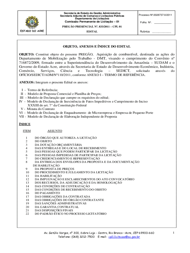 Obtenha o gratuito OBJETO: Constitui objeto do presente PREGO, Aquisio de combustvel, destinada a...