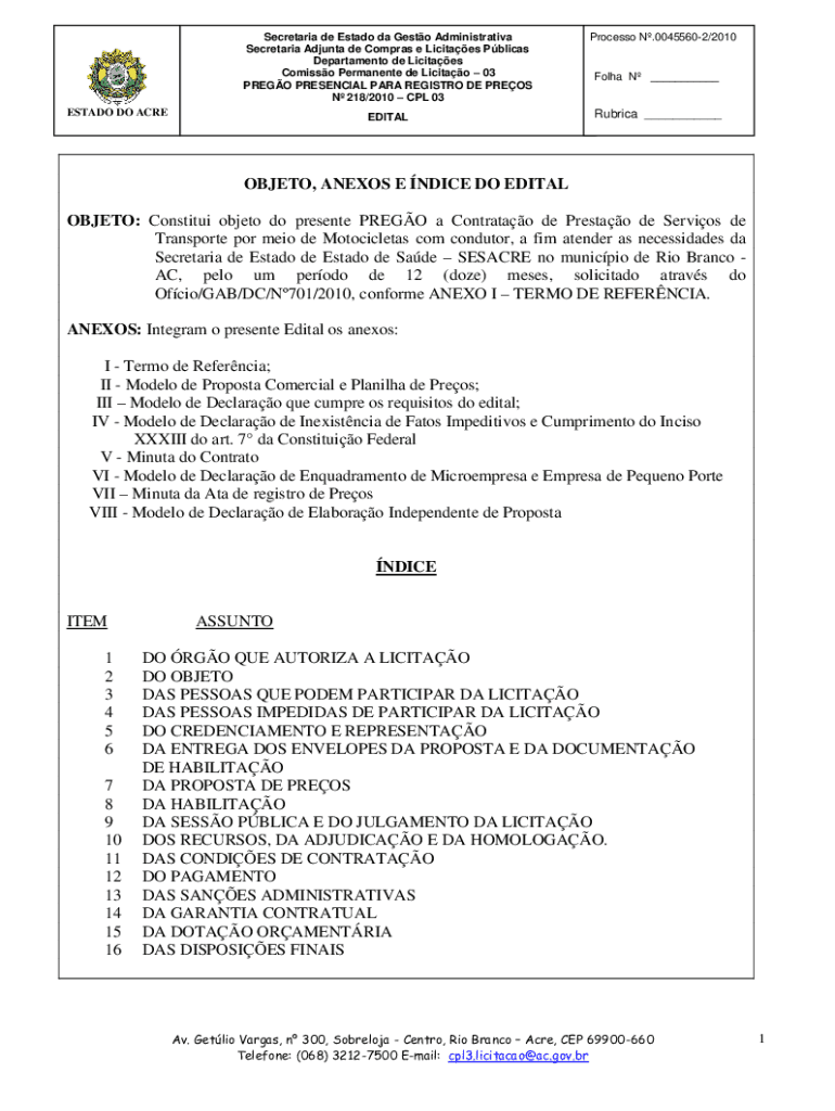 Obtenha o gratuito OBJETO: Constitui objeto do presente PREGO a Contratao de Prestao de Servios de