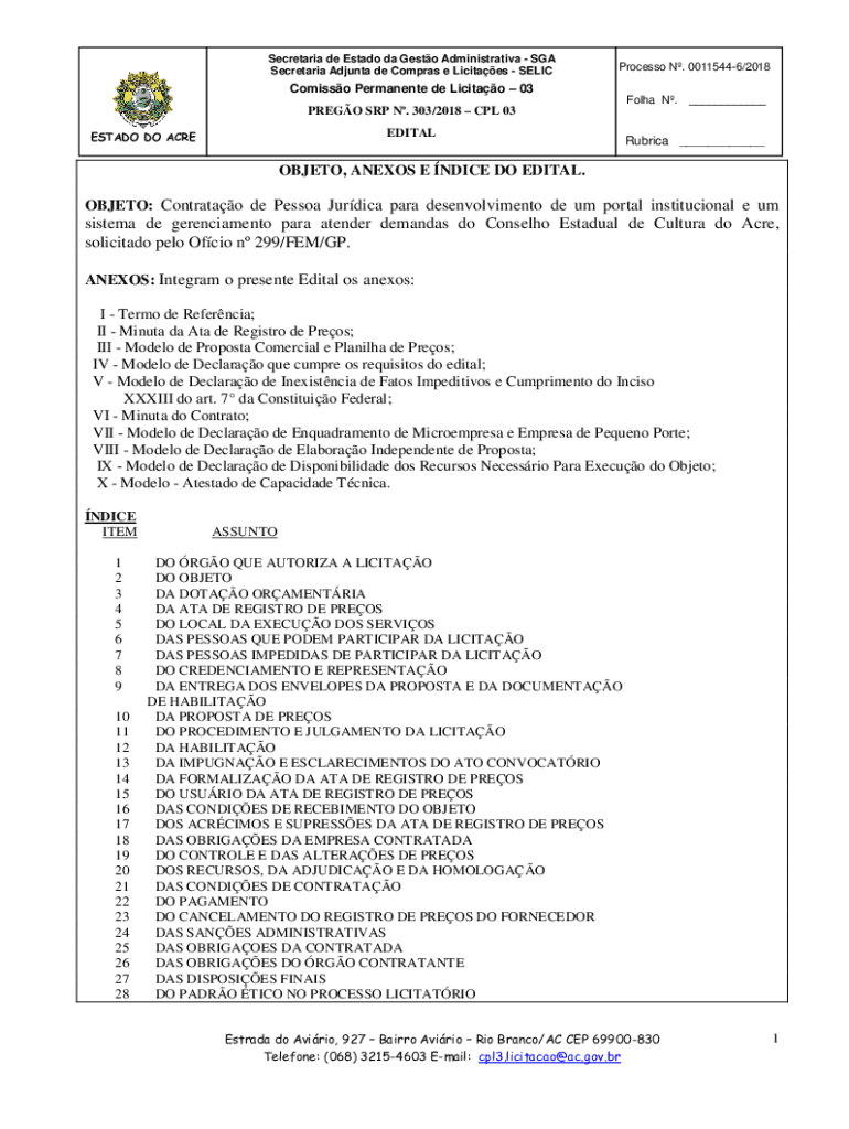 Secretariat Ad junta DE Cameras e Lucites SELICProcesso N. 00115446/2018Comisso Permanent de Licitao 03