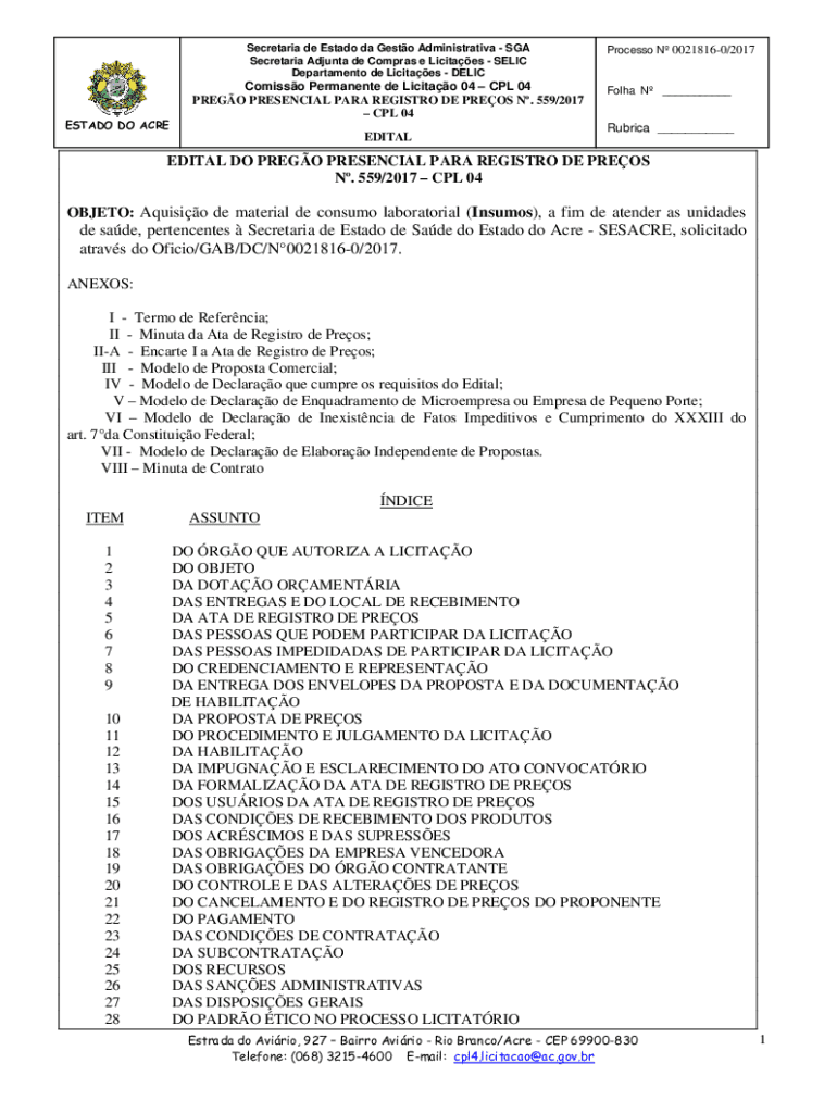 Department de Licitaes DELICESTADO DO ACREComisso Permanent de Licitao 04 CPL 04