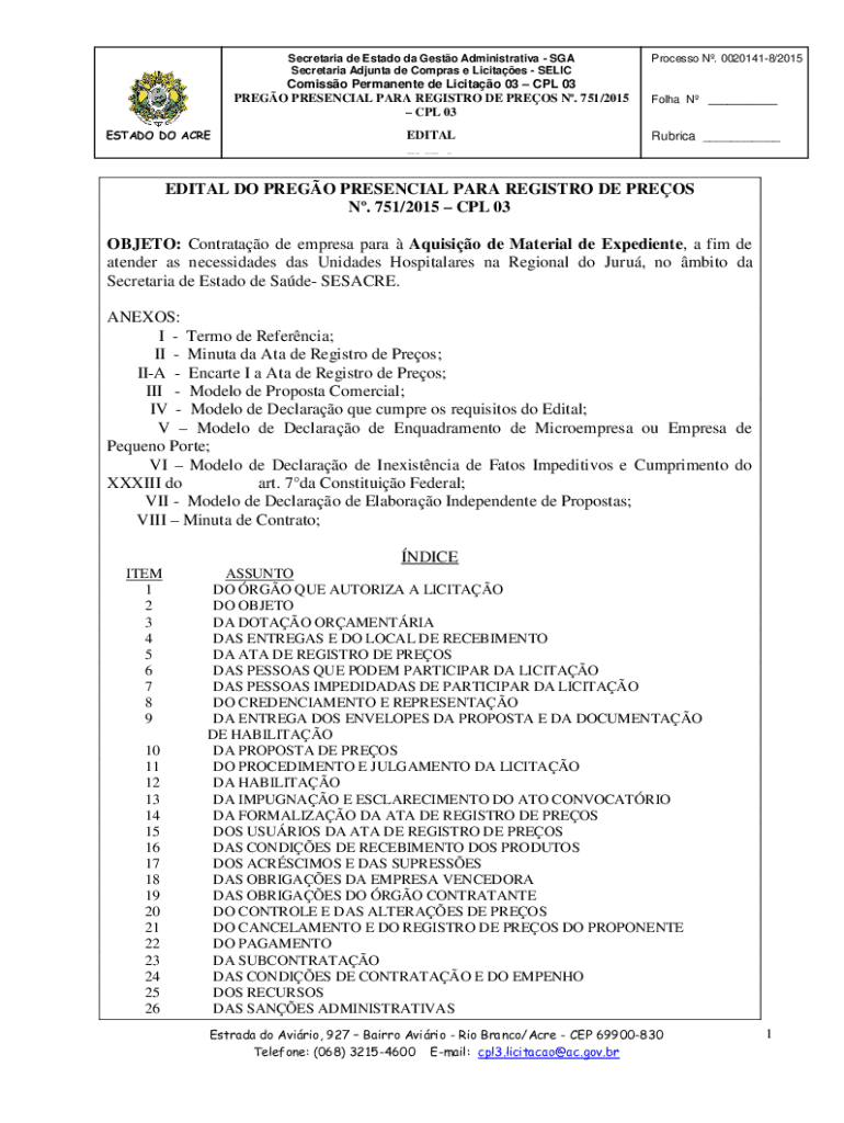 Obtenha o gratuito OBJETO: Contratao de empresa para Aquisio de Material de Expediente, a fim de