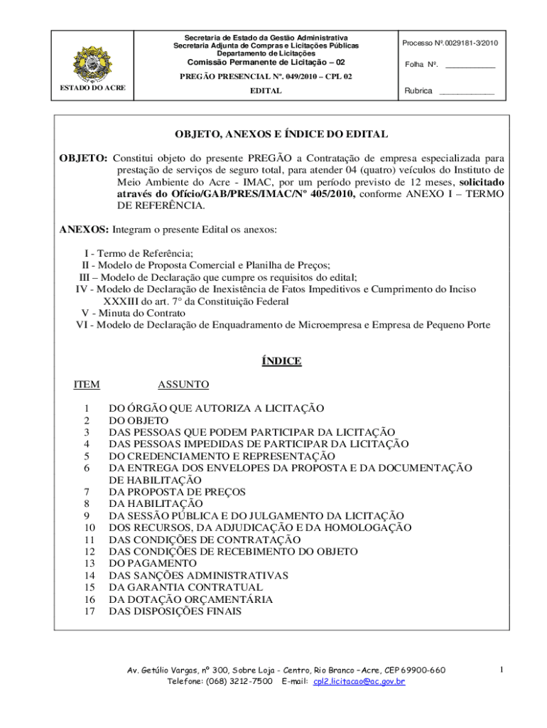 Obtenha o gratuito OBJETO: Constitui objeto do presente PREGO a Contratao de empresa especializad...