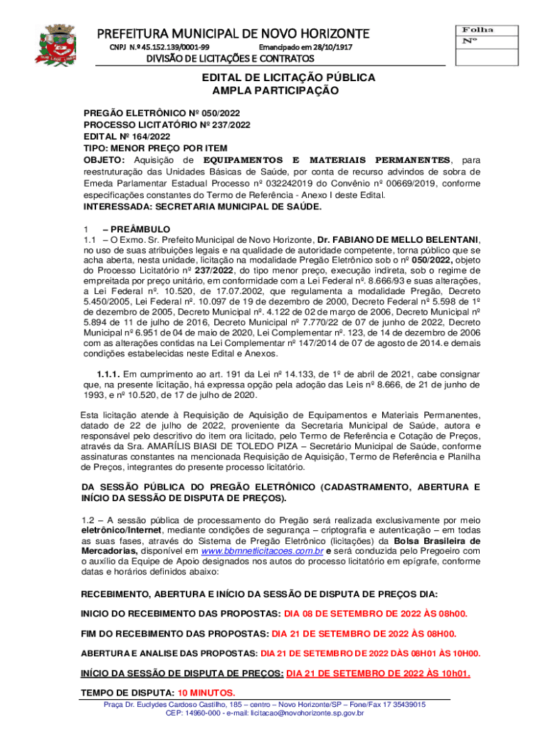 PREFECTURE MUNICIPAL DE NOVA HORIZONTAL