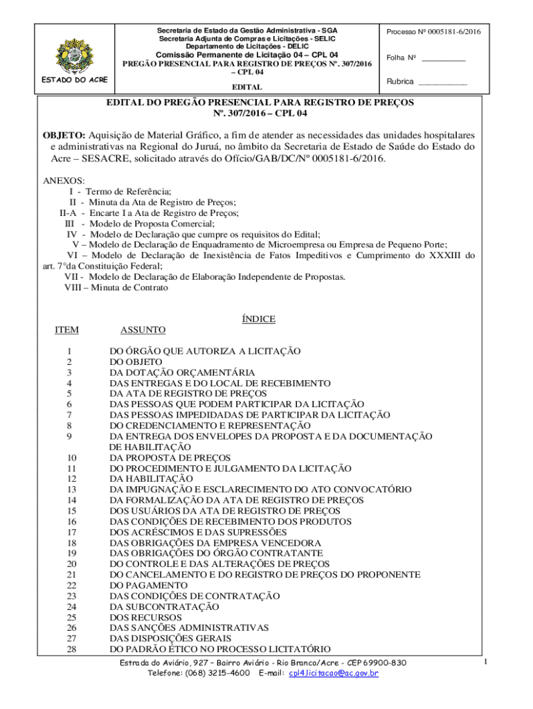 Secretariat de Estado the Gusto Administrative SGA Secretariat Ad junta DE Cameras e Lucites RELIC Department de Licitaes DELICESTADO DO ACREComisso Permanent de Licitao 04 CPL 04 PRESO PRESENCE PARA