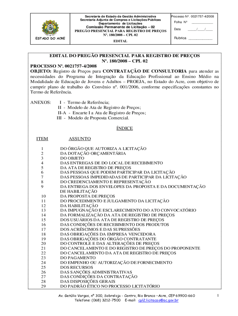 Secretariat de Estado the Gusto Administrative Secretariat Ad junta DE Cameras e Lucites Pelican Department de LicitaesESTADO DO ACREComisso Permanent de Licitao 02 PRESO PRESENCE PARA REGISTRY DE