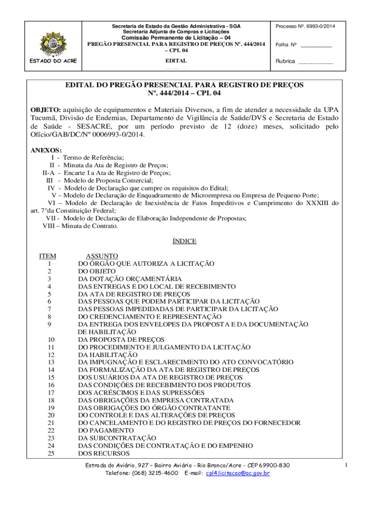 Obtenha o gratuito OBJETO: aquisio de equipamentos e Materiais Diversos, a fim de atender a neces...
