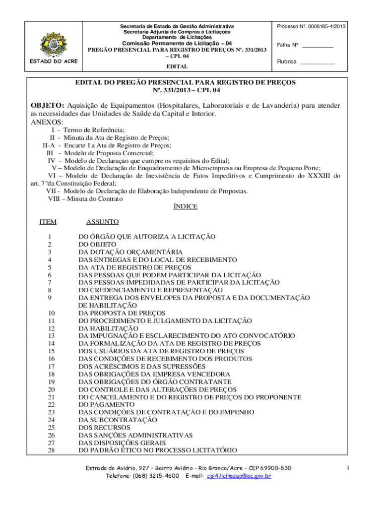 Secretariat de Estado the Gusto Administrative Secretariat Ad junta DE Cameras e Lucites Department de LicitaesESTADO DO ACREComisso Permanent de Licitao 04 PRESO PRESENCE PARA REGISTRY DE PRESS N.