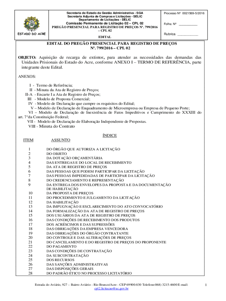 Secretariat de Estado the Gusto Administrative SGA Secretariat Ad junta DE Cameras e Lucites RELIC Department de Licitaes DELICESTADO DO ACREComisso Permanent de Licitao 02 CPL 02 PRESO PRESENCE PARA