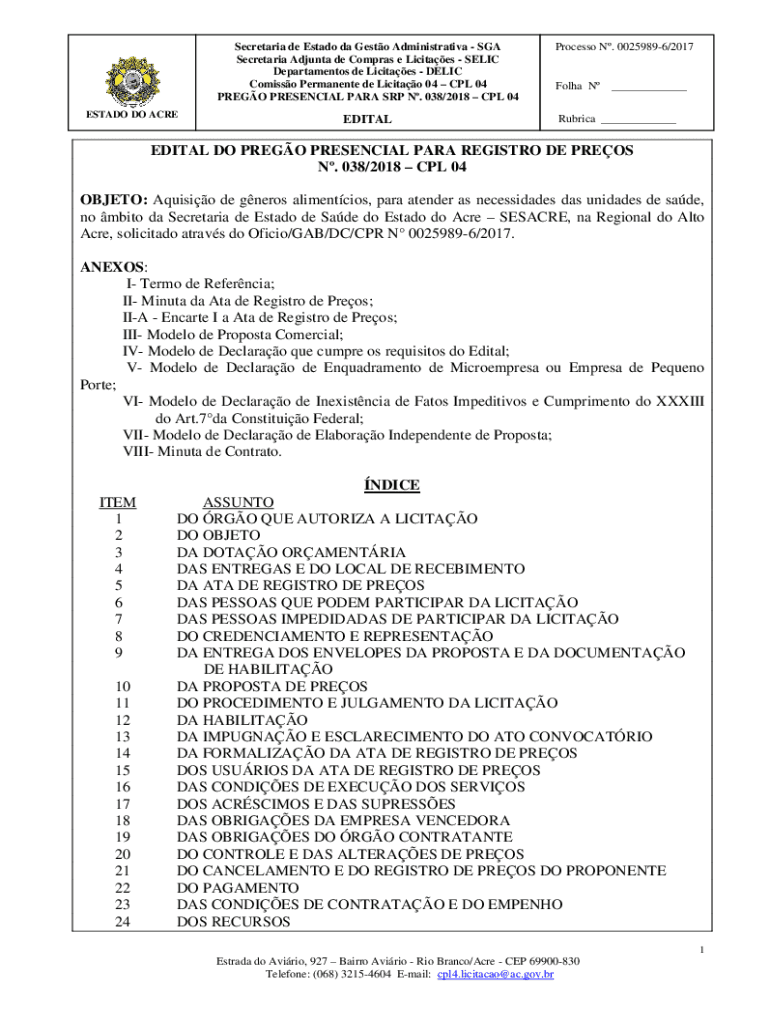 Obtenha o gratuito OBJETO: Aquisio de gneros alimentcios, para atender as necessidades das unidad...
