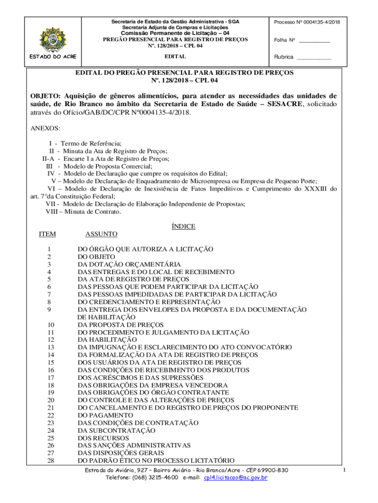 Secretariat Ad junta DE Cameras e LicitaesProcesso N 00041354/2018Comisso Permanent de Licitao 04