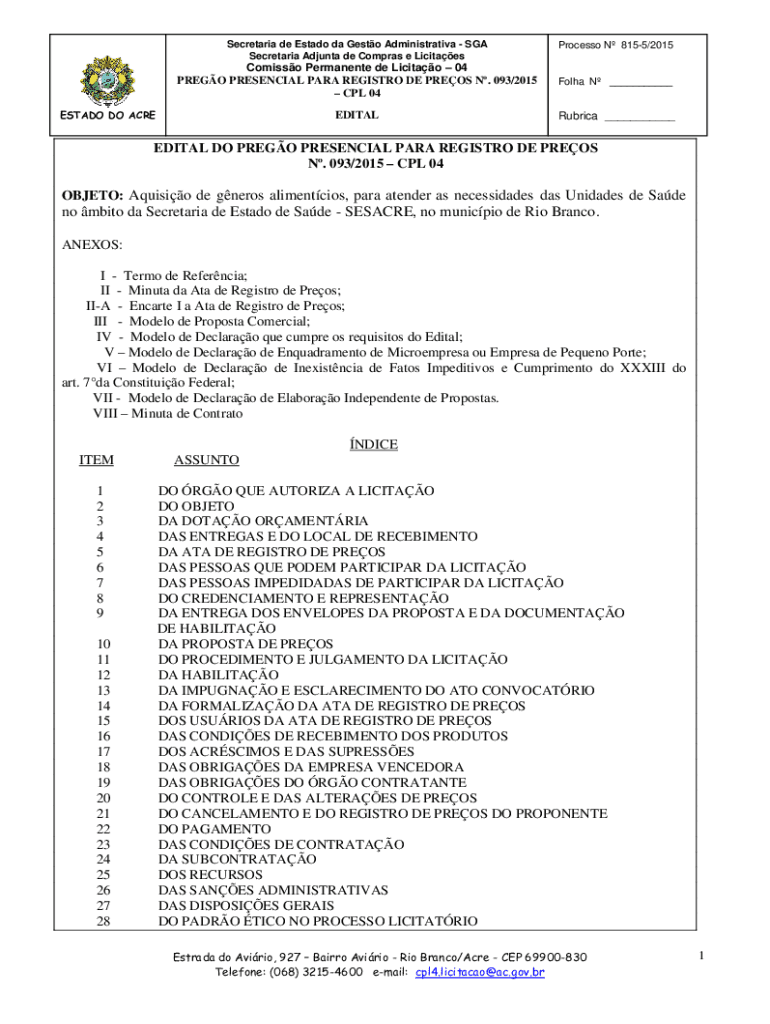 Secretariat Ad junta DE Cameras e LicitaesProcesso N 8155/2015Comisso Permanent de Licitao 04