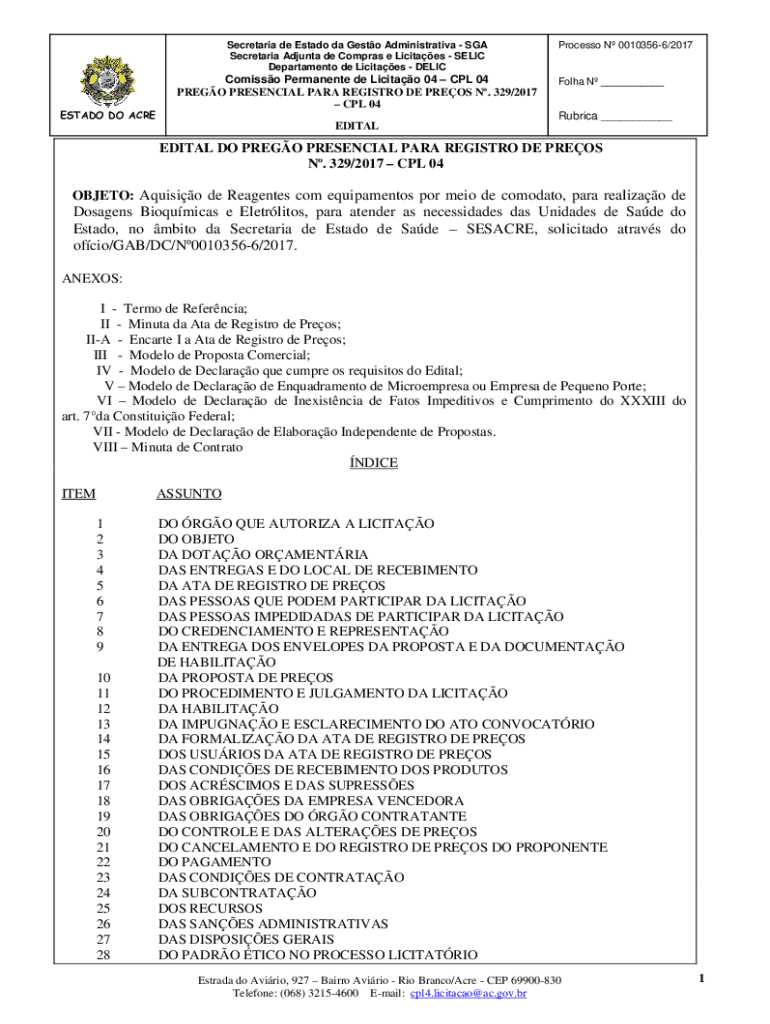 Department de Licitaes DELICESTADO DO ACREComisso Permanent de Licitao 04 CPL 04