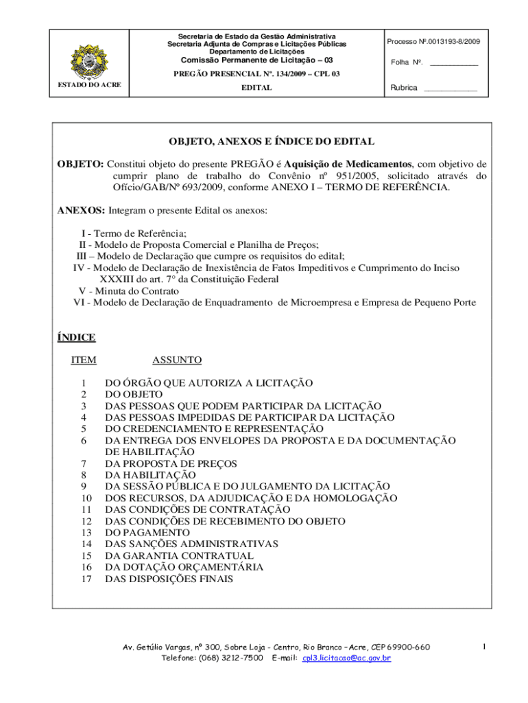 Obtenha o gratuito OBJETO: Constitui objeto do presente PREGO Aquisio de Medicamentos, com objeti...