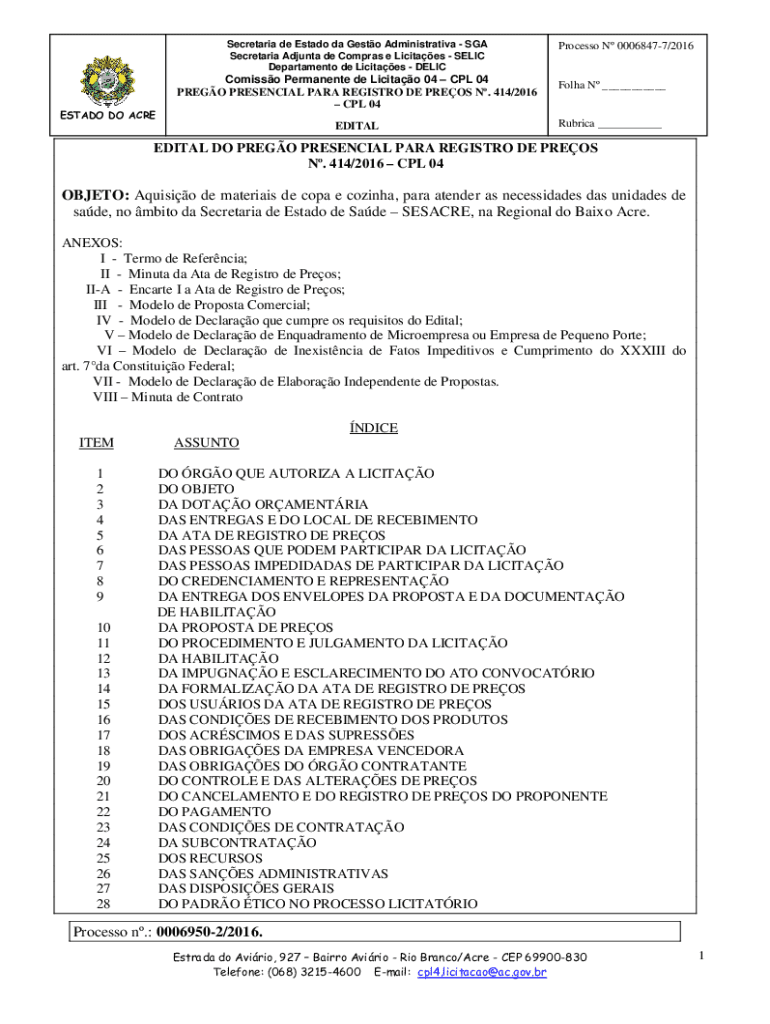 Department de Licitaes DELICESTADO DO ACREComisso Permanent de Licitao 04 CPL 04