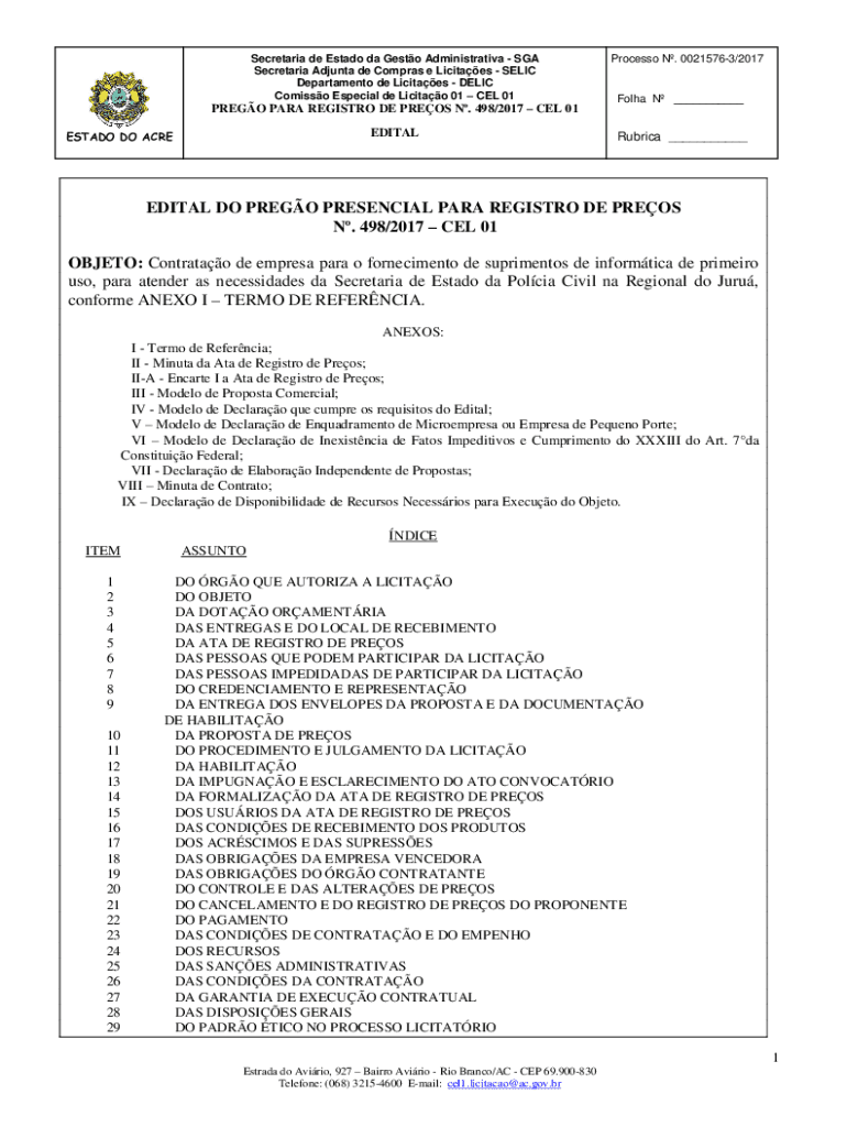 Obtenha o gratuito OBJETO: Contratao de empresa para o fornecimento de suprimentos de informtica ...