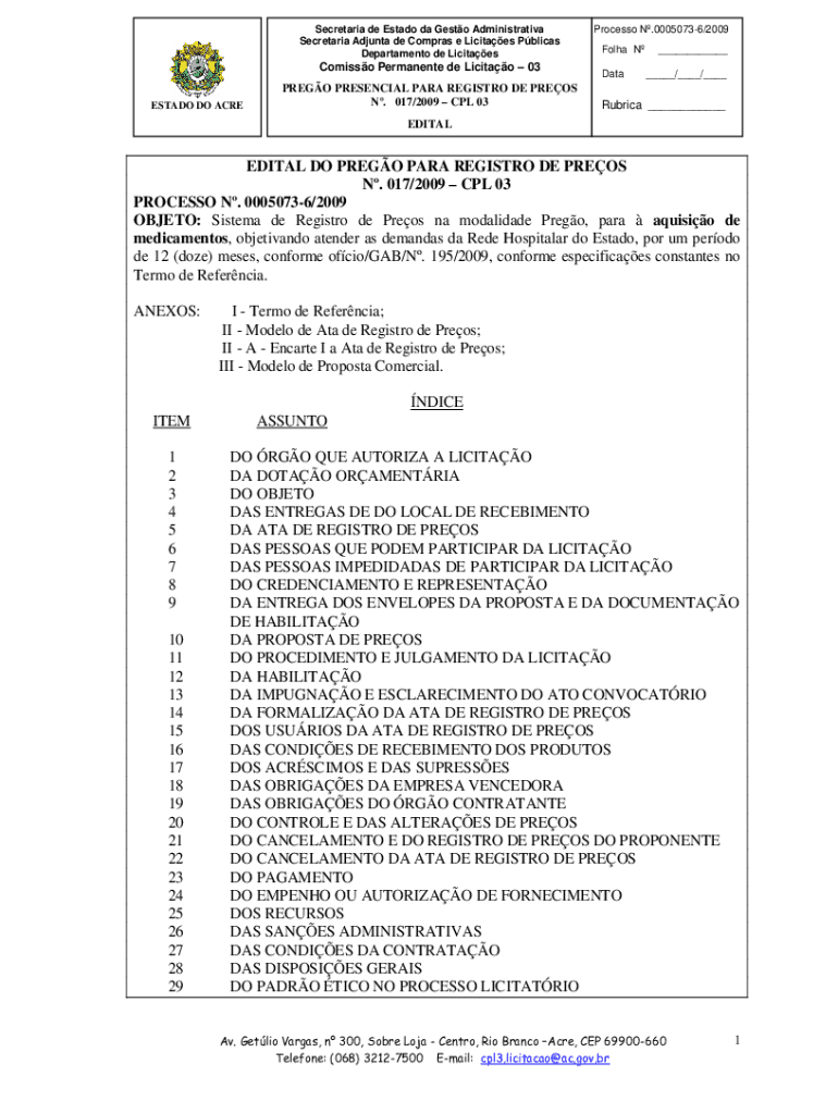Obtenha o gratuito OBJETO: Sistema de Registro de Preos na modalidade Prego, para aquisio de